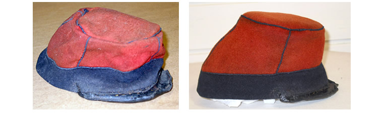 This Civil War kepi was cleaned and re-blocked. The leather crown inset was reformed and stabilized.